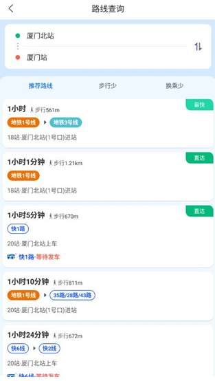 2、智能路线规划:根据用户的出发地和目的地,自动规划多个旅行计划,包括最快和最少换乘等选项。