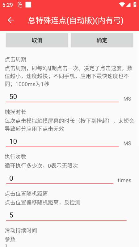 3、可自定义点击频率、位置、时长等参数。