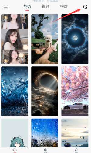 2、浏览静态壁纸页面,点击右上角的搜索按钮。