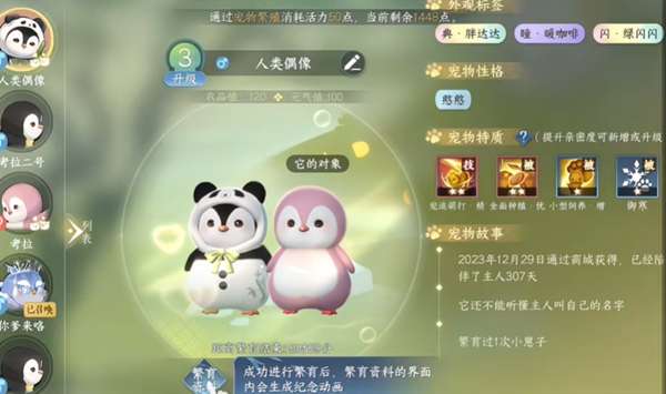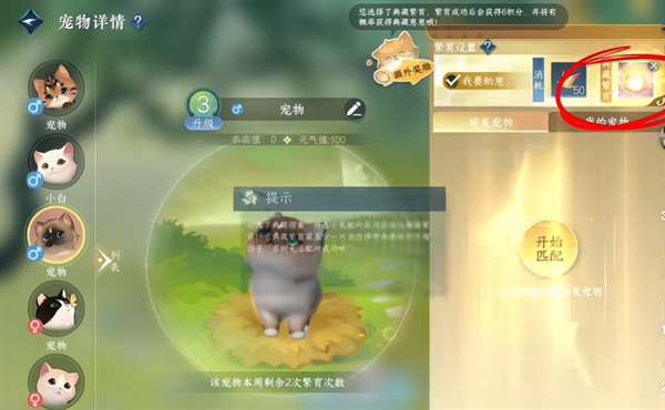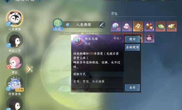 2、用道具里的快乐毛球把宠物升到三级,在繁育的时候加入。