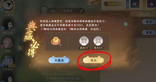 4、自己或者对方有一只是典藏就行,可以同时这样操作8只,生完8个后会获得一个金丹。
