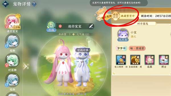 5、然后找一个福宝宝加入锦囊和金丹与别人的典藏繁育出的百分百是典藏。