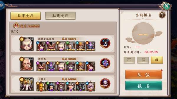 7、【帮会战】由帮主和管理员报名参赛,赛季时长为一周,分三个阶段,积分排位赛时间为周一至周五晚上24点,参战队伍不少于10支队伍。