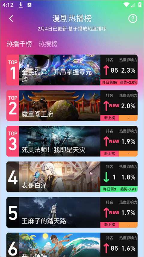 火龙漫剧是一款非常实用的免费漫剧播放软件,拥有丰富的漫剧类型,可以让用户自由根据条件,地区等方式进行筛选查看,自由呈现最新且受欢迎的漫剧,免费在线选择观看,能完全满足所有追漫需求,还整合了全新的首页,轻松输入漫剧名称来搜索查找,随时关注各种精彩漫剧的更新,可以让用户在线播放感兴趣的漫剧内容,轻松享受全面的追剧乐趣,还能在线收藏各种好看的漫剧并管理,有需要的用户欢迎来下载软件。
