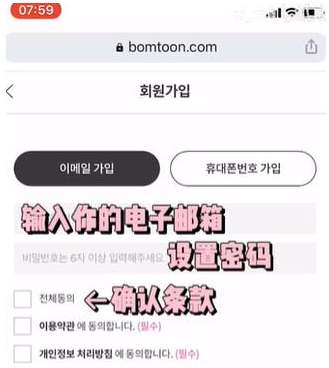 bomtoon漫画注册账号教程