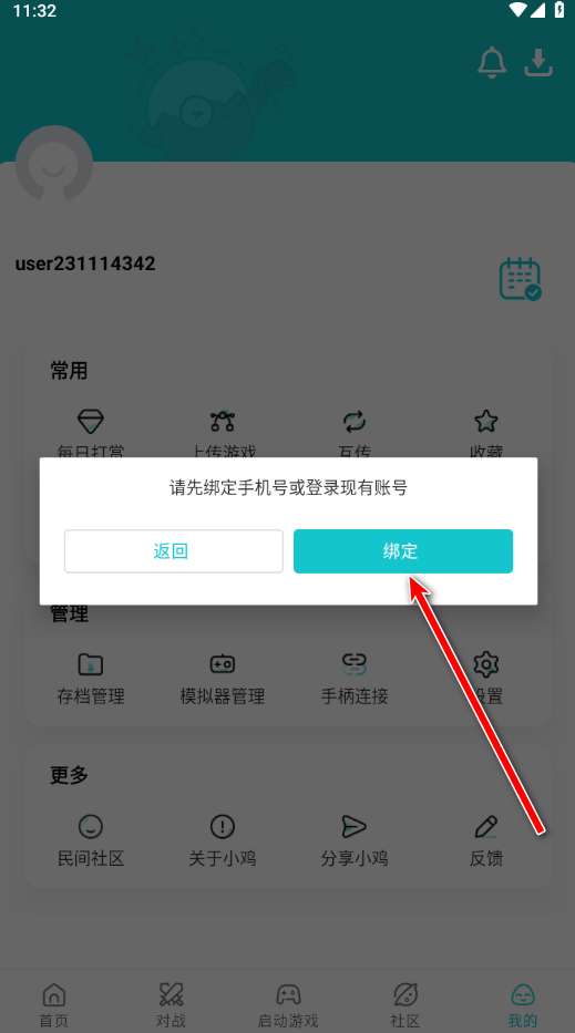 1、请在本网站本页面下载安装小鸡模拟器app,打开软件进入首页点击我的,再点击头像。