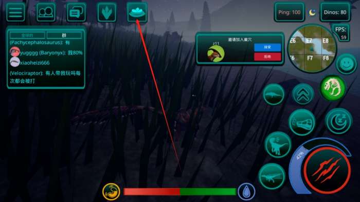 7、建造巢穴,养育恐龙蛋,并邀请服务器上的其他玩家加入你的巢穴(家庭)。注意,你的恐龙必须完全成长且账户达到5级或以上才能使用此功能。