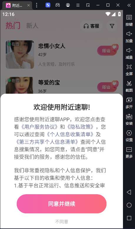 附近速聊是一款受欢迎的在线聊天交友软件,拥有智能化的匹配功能,可以根据用户的位置和条件进行筛选推送,轻松在里面找到同城优质的单身异性,轻松开启有趣的聊天互动,还能及时显示附近的人,随时随地在线聊天并找到感兴趣的聊天话题,自由帮助用户打破聊天尴尬,轻松享受安全的交友过程和环境,还提供全新的聊天模式,包括视频聊天,语音聊天,文字聊天等,随时快速交友,有兴趣的用户欢迎下载软件吧。