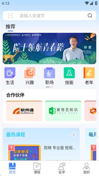 终身教育平台是一款基于“为美好生活而学习”的教育理念,以“内容+服务”为核心,打造融合“学习、生活、交流社区”为一体的移动学习平台。目前涵盖生活技能、兴趣爱好、职场素养、职业技能、老年学习、学历继续教育等六大领域,满足用户多样化、个性化的学习需求。整合多家平台优质资源,收录50余万门课程,强大的资源库支撑,为用户提供学习支持与服务。感兴趣的朋友不要错过下载。
