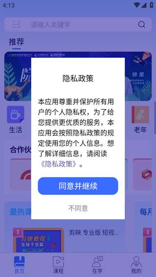 1、打开app,阅读隐私政策之后点击同意并继续即可使用。