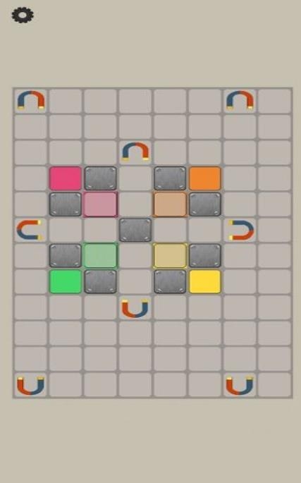 96方格有些时候大家可以看到有不同的方块,以及磁铁。里面的方块材质有很多,比方说铁块的木质的以及半透明带着比较淡的颜色。在这里通关可不简单,首先,游戏关卡中的场地是以不同的格子做的版面,上面会放置短不同的正方形以及磁铁,要做的就是把两边的方块与透明的位置填充在一块儿操作还是挺难的。