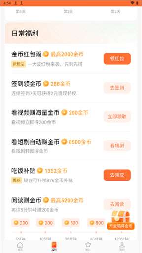 3、金币红包雨、看短剧、签到等等都能为用户带来许多的金币。
