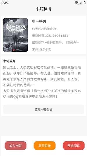 3、点击对应的小说,在详情页面,选择开始阅读或者加入书架。