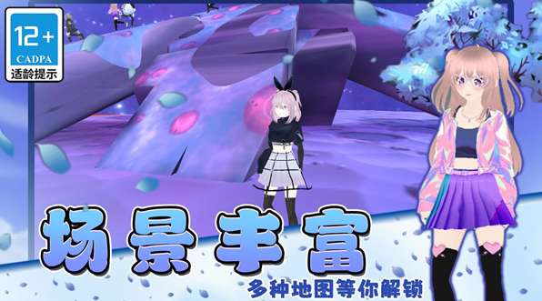 2、二次元风格与樱花学校主题场景相结合。角色可爱,场景色彩鲜艳,营造出轻松愉快的氛围。
