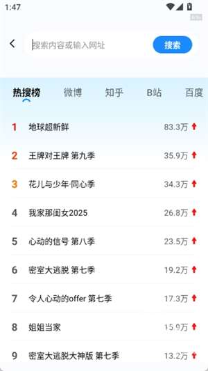 3、进入首页,可以直接搜索内容或者输入网址。
