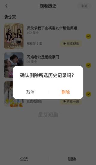 5、删除后,星芽短剧《最近》中的历史记录也被删除。