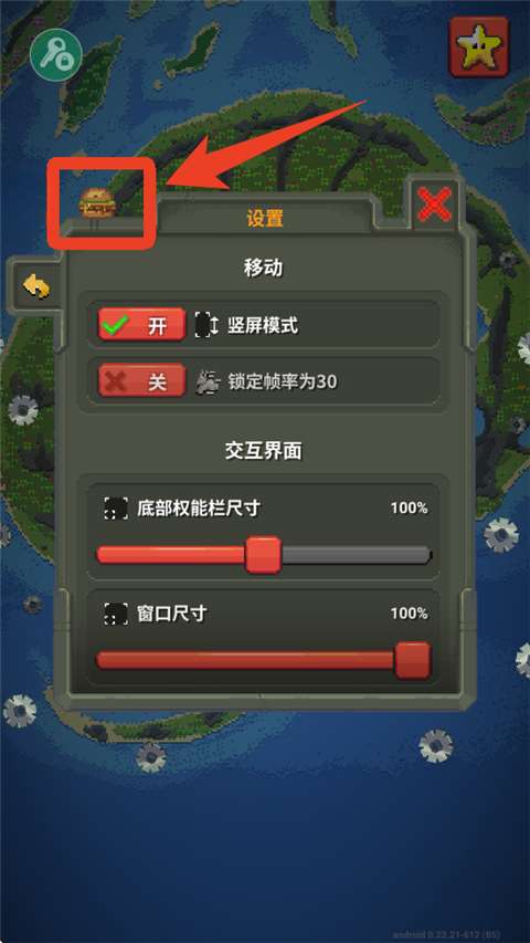3、进入设置页面后会有一些基础的游戏设置,点击左上角的【汉堡】十一下,不想数点了多少下的小伙伴可以疯狂点击,多点几下就行。