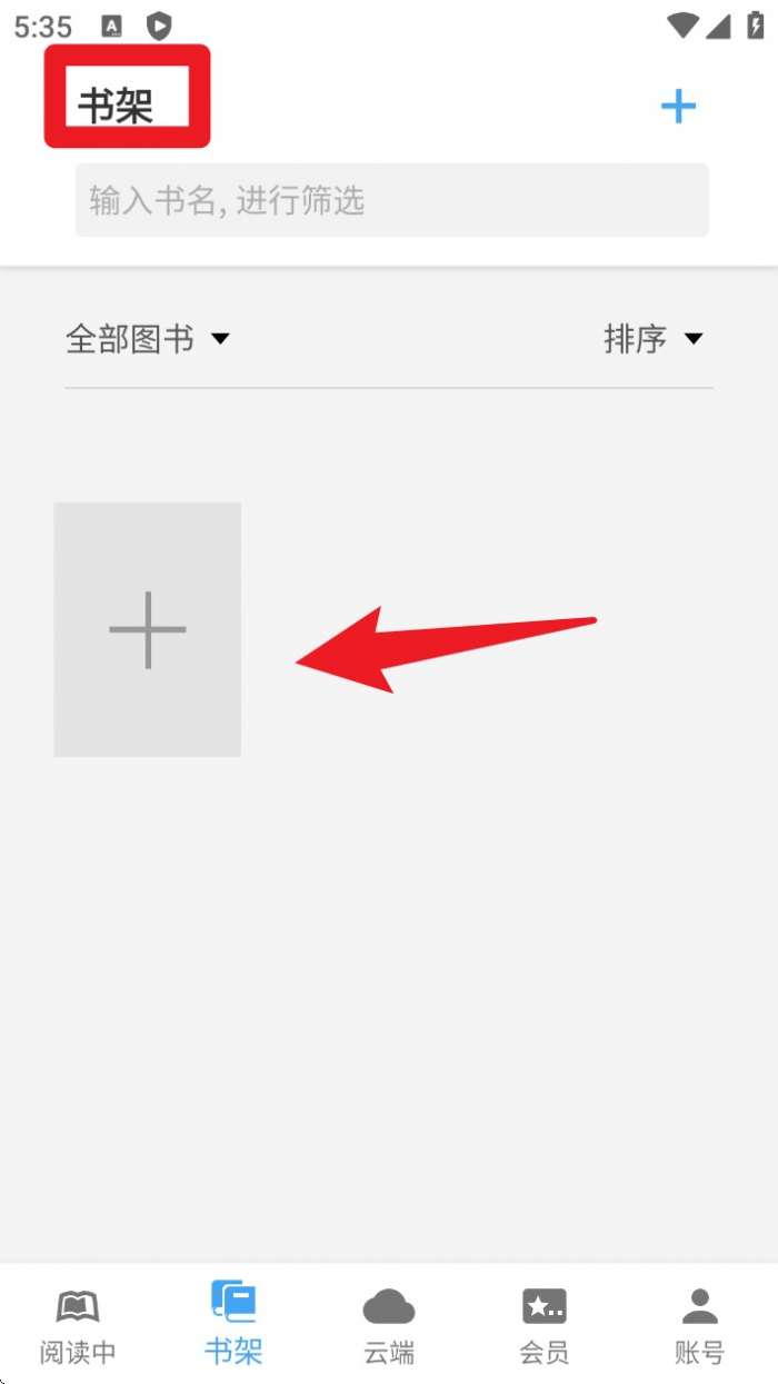 2、点击底部导航栏的「书架」按钮,进入书架页面,在此可查看已添加的图书。