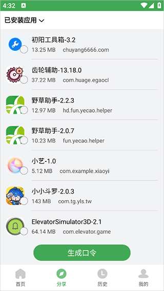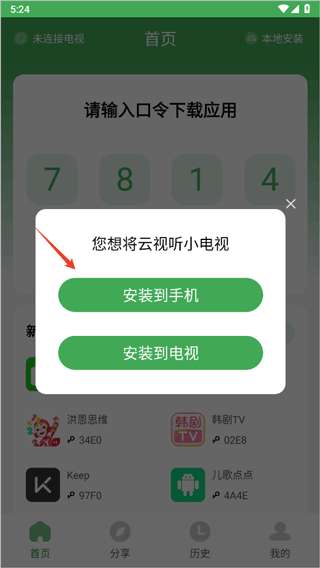 5、电视与手机互连后可以对电视上和手机上的应用进行口令生成分享操作。