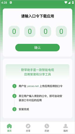1、打开野草助手app,输入口令,点击确定,具体口令参考如下。