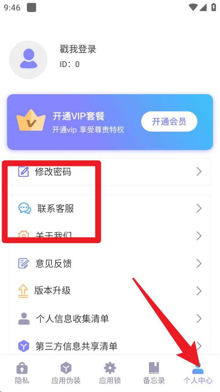 5、在「个人中心」中可修改密码、联系客服或查看版本信息,也能随时管理个人数据。