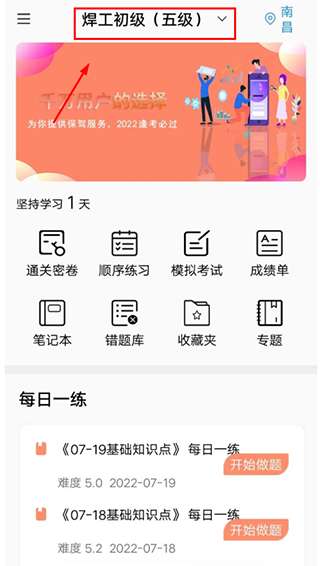 登陆焊工证考试题库免费软件,在点击首页最上方,跳转至另一页面即可选择。