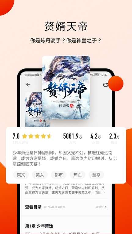 2、该电子阅读器专为手机用户设计,集成了大量的原创和授权网络小说资源。