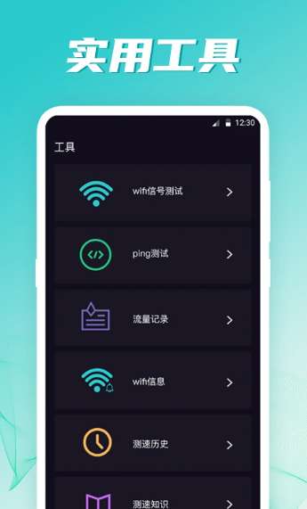 2、【信号强度,一目了然】 信号强度测试,可以一键点击查看, Wifi信号测试,寻找附件信号更好的地方,动画图标,生动明确。