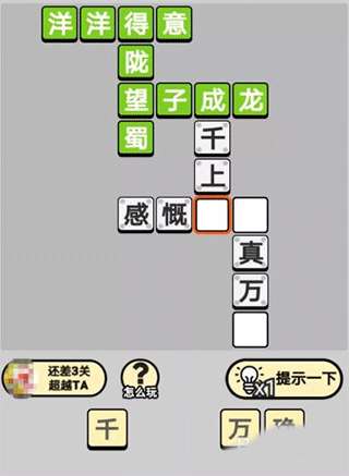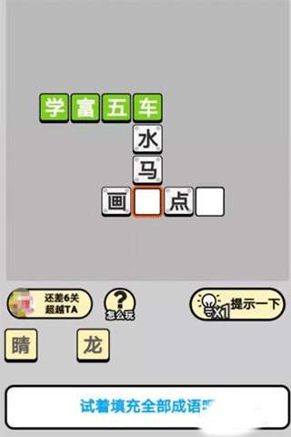 1、寓教于乐:游戏分层次进行,玩家不仅可以锻炼脑力,还可以在填写成语的同时无意识地学习成语知识。