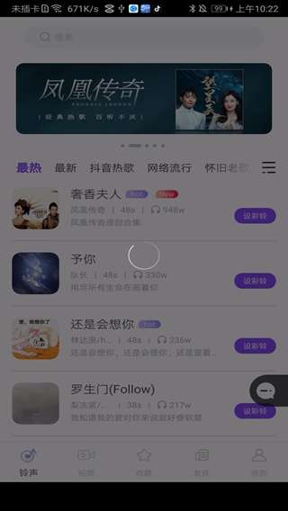 2、进入铃声页面,您可以点击收听此类别下的各种铃声资源,只需点击一下即可设置手机的铃声设置。
