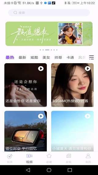 3、进入视频分类页面,点击查看视频类型的铃声资源。