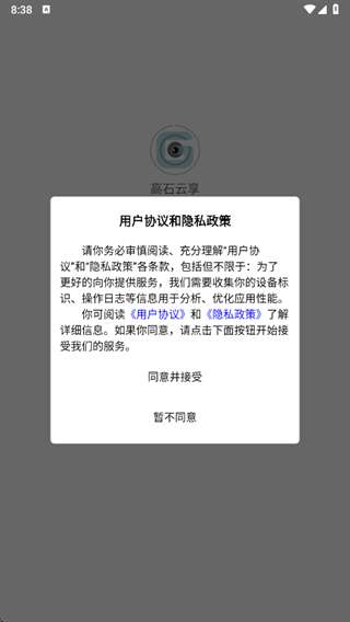 1、首先下载最新版的高石云享软件,安装好之后打开点击同意。