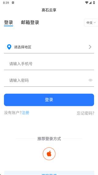 2、我们需要选择所在地区,选择后输入你的手机号和密码登录这款软件。