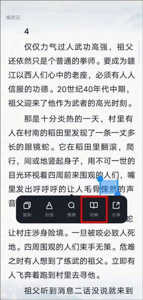 1、遇到要查询的单词时,长按屏幕通过下划线选择单词。