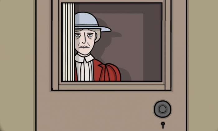 1、延续锈湖标志性的怪诞美学,场景细节中暗藏隐喻,如宣传图中血迹斑斑的阶梯。