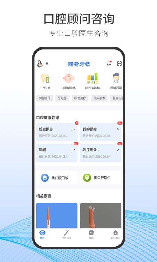 随身牙e是一款非常受欢迎的医生咨询软件,可以轻松为用户提供全方位的口腔健康管理服务,随时随地在线与专业牙医交流,接受免费咨询和实时牙齿健康检查,确保口腔问题得到及时解决,还能及时更新个性化的解决方案,成为你和家人的移动牙医,让口腔健康管理更简单、更高效,能完全满足所有使用需求,还能轻松浏览阅读各种牙齿相关的新闻信息,方便用户轻松关爱牙齿,有需要的用户欢迎来本站下载软件。