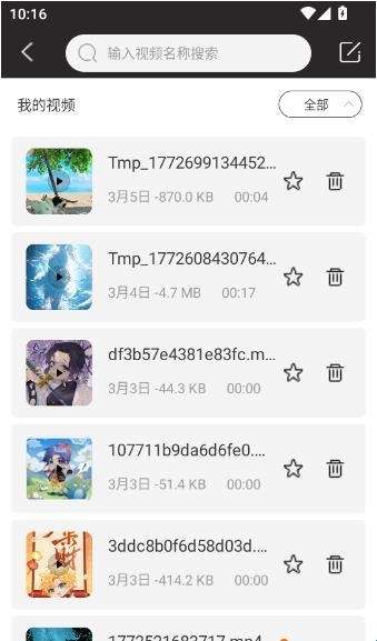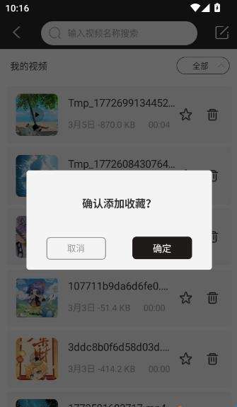 4、然后进入“我的视频”菜单界面,点击视频文件右侧的“☆”风格图标按钮,然后点击它。