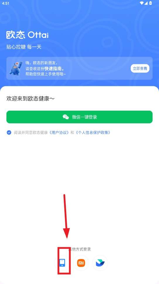 1、打开欧泰健康app,点击“同意相关协议”,进入登录界面,选择登录方式。
