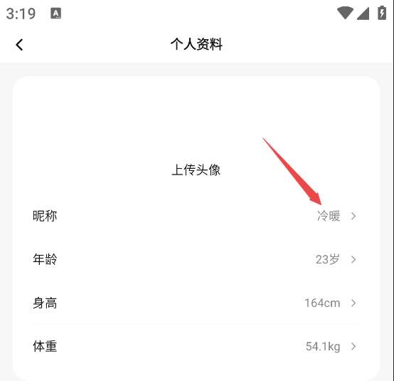 3、进入个人资料菜单栏中,找到昵称选项,点击进去。