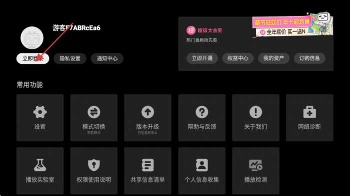 3、在账号页面,点击【立即登录】按钮,进入登录准备界面。