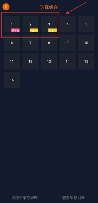 3、可以看到选中的集数显示的缓存状态。
