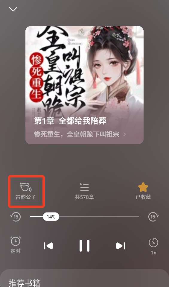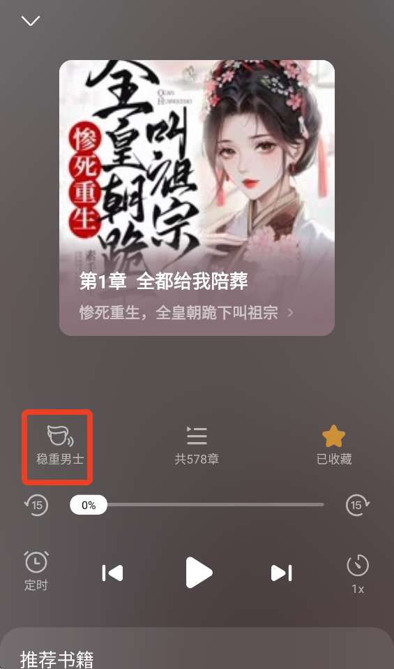 5、完成选择后,返回有声读物界面,您将看到左侧的声音已被替换。