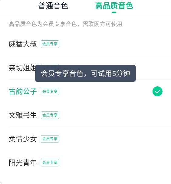 3、第二个是高质量的声音,这需要成为会员才能享受独家声音,并且需要互联网连接才能使用。