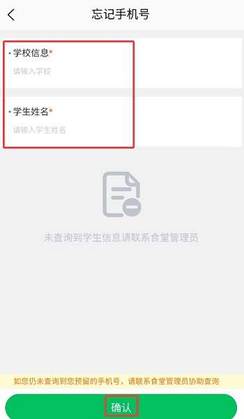 4、若忘记手机号,可通过输入学校名称和学生姓名进行身份验证后查询账号。