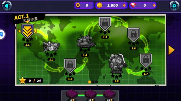 2、超多关卡涵盖,沙漠城市等不同场景地图解锁,需要逐关挑战。