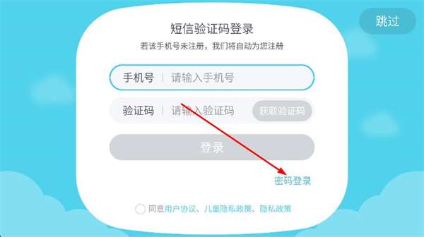 2、在登录页面,选择并点击右下方的密码登录选项。