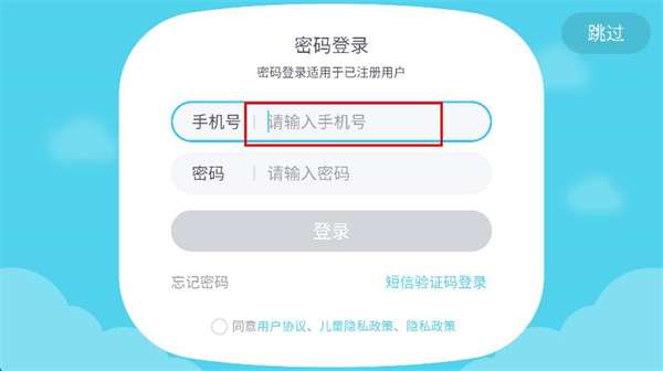 3、在登录页面,点击输入框,在输入框内输入手机号。