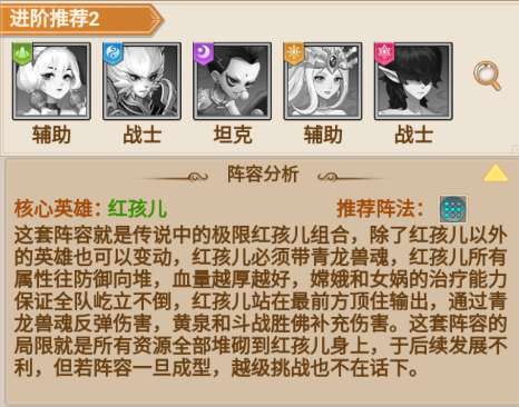 特点:“极限红孩儿” 组合,红孩儿承伤 + 青龙兽魂反弹伤害,输出集中但资源倾斜严重,成型后可挑战高难度关卡,后期发展受限。