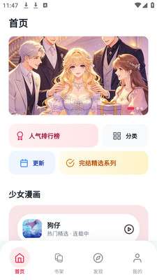1、多入口快速找漫。首页设置热门排行榜、分类专区、更新提醒、完结精选等功能。热门新作、连载漫画、完整全集一目了然,找书效率更高更便捷。