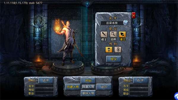 1、进入游戏之后选择你想要玩的职业以及性别,点击开始。